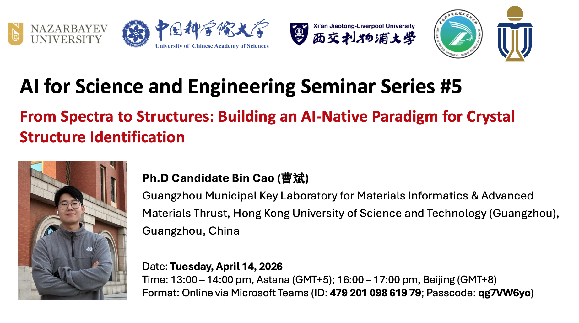 An invited oral presentation titled “From Spectra to Structures: Building an AI-Native Paradigm for Crystal Structure Identification”.